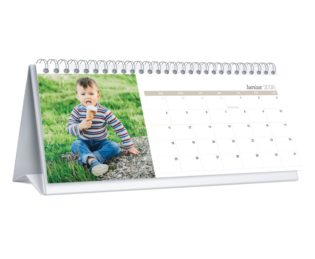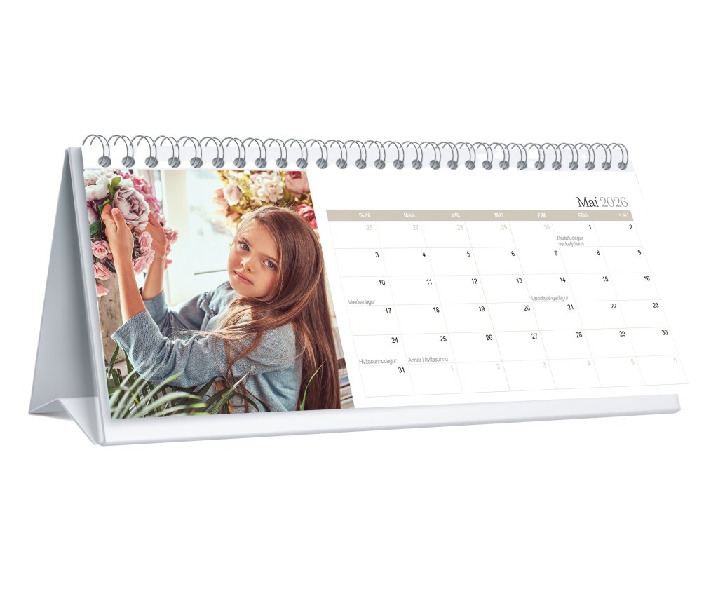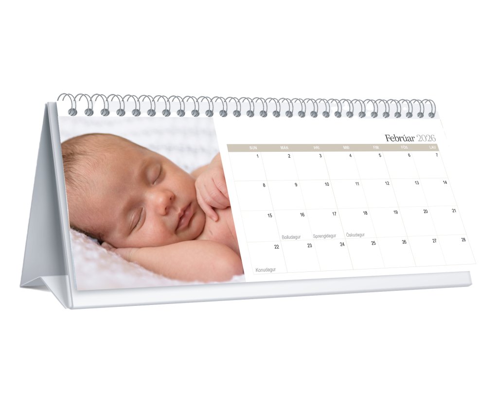 Gert er ráð fyrir 1 mynd á hverri síðu. Hægt er að setja inn afmælisdaga ef þess er óskað.