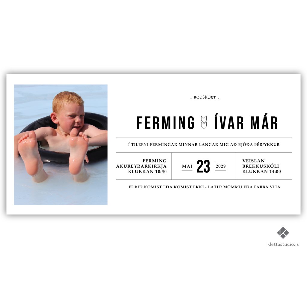 Stílhreint og fallegt fermingarboðskort með einni mynd til hliðar.
